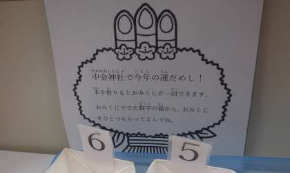 中金っ子に少しでも本を読む習慣をつけてほしいと、いつも図書館司書さんが図書館の環境を時期に合わせて整えて頂けています。今回は、おみくじを図書館で見つけました。きっとこのおかげで本を借りた子も多かったのではないかと思います。