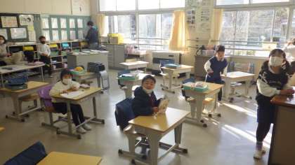 登校後の中金小学校の様子です。今日は、この冬一番の寒さで、うっすらと雪が積もっています。登校してくる児童の話では、道が凍ていて滑って楽しいと話してくれる子も居ました。そんな中、中金小学校の朝の風景はいつもと一緒で、仲よく元気にそれぞれ過ごせています。素晴らしい中金小学校が保たれています。