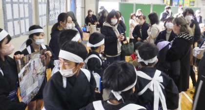 来賓の方や保護者の方を招いて、学習発表会を行いました。「ふるさと学習」のまとめの発表です。今まで「ふるさと学習」でお世話になった、地域講師の方たちに感謝の気持ちを伝えることができました。本当に素晴らしい学習発表会になりました。来賓の方たちには、「ここまで小学生がやれるとは、思っていませんでした。素晴らしかったです」と絶賛でした。