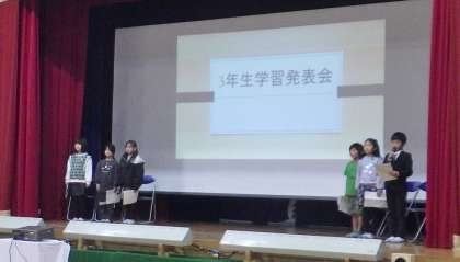 来賓の方や保護者の方を招いて、学習発表会を行いました。「ふるさと学習」のまとめの発表です。今まで「ふるさと学習」でお世話になった、地域講師の方たちに感謝の気持ちを伝えることができました。本当に素晴らしい学習発表会になりました。来賓の方たちには、「ここまで小学生がやれるとは、思っていませんでした。素晴らしかったです」と絶賛でした。