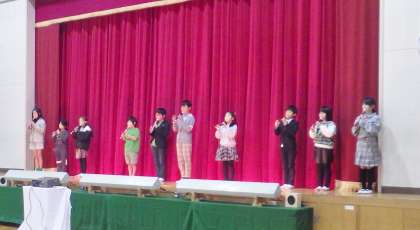 来賓の方や保護者の方を招いて、学習発表会を行いました。「ふるさと学習」のまとめの発表です。今まで「ふるさと学習」でお世話になった、地域講師の方たちに感謝の気持ちを伝えることができました。本当に素晴らしい学習発表会になりました。来賓の方たちには、「ここまで小学生がやれるとは、思っていませんでした。素晴らしかったです」と絶賛でした。