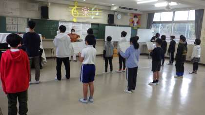 先生たちが、観たい授業を自由に観合い、授業後、先生同士で質問したり良かったところを認め合ったりして、授業力をつける週間が始まっています。若い先生が積極的に授業を観ることができ、授業をした先生に授業について、気楽に質問や相談ができます。今日は、高学年の音楽の授業を観合いました。