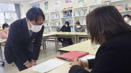 昨日、下校後に愛知県総合教育センターの先生をお招きして、研修会を行いました。楽しい、やる気を起こさせる授業のポイントを2人の先生から学びました。本校の若い先生たちを中心に活発に意見を出し合い、研修会は盛り上がりました。とても有意義な研修となりました。