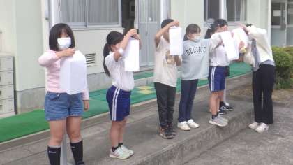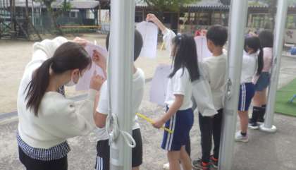 理科の授業で気温の測定を4年生が行っていました。1時間ごとに外気温を測定しているとのことでした。そういえば、何回も測定している姿を見ました。さて、どんな結果が導かれるのでしょうか。また、観察の結果・考察を聞かせてもらおうと思います。