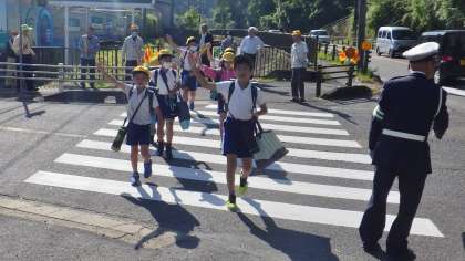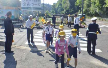 朝、登校指導に鈴本昌秋市議会議員さんをはじめ、本当に多くの地域の方たちが参加していただけました。心より感謝申し上げます。元気で明るい中金っ子をこんなに多くの方たちに守っていただいて登校できることに、心が温まる思いでした。安全な学校は、こうやって作られていきます。また、中金小学校は交通事故がここ数年起こっていません。昨年度は、県内の優良校3校に選んでいただき、愛知県知事から表彰していただきました。