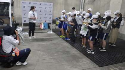 5、6年生が校区内にある中京ゴルフクラブ石野コースで行われている大会に招待され、プロの大会がどのように運営されているのかについて見学する、貴重な体験をしてきました。少しでしたが試合をするプロの真剣な様子も見ることができました。選手が移動する時に「頑張ってください」と児童が声をかけると手を振ってこたえてくれた場面がとても印象的でした。明日、明後日の試合の放送の中で中金っ子の応援の様子が紹介されるそうです。