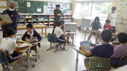 今年の本校の取組の重点項目の一つに、朝の中金タイムの充実があります。それぞれのクラスが火・木・金曜日の中金タイムを学習の時間として充実させていくという目標です。今日は、その取り組みの様子を見合いました。本日は、4、6年生が公開しました。短い時間ですが、学習目標を意識した学習ができていました。これからもっと充実した時間にしていきます。