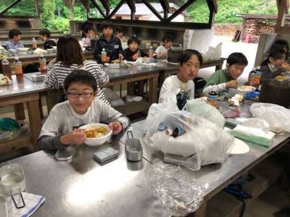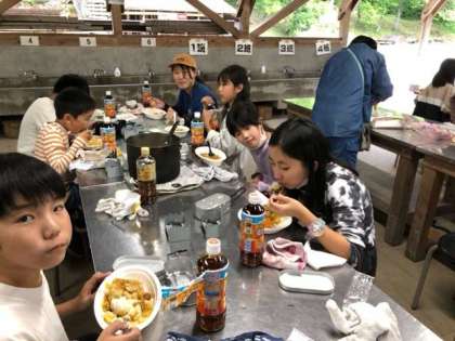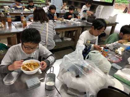 素晴らしく美味しいカレーが出来上がりました。どこの班からも、「美味しい」の声が聞こえて来ます。先生方も「美味しいね」と笑顔いっぱいです。