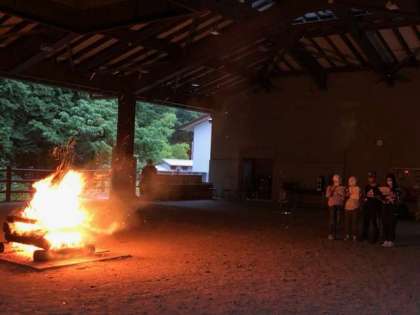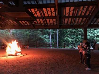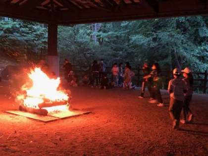 キャンプファイヤーが盛り上がってます