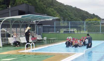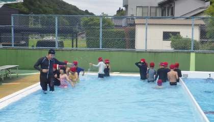 2時間目に1、2年生が体育の授業をプールで行っていました。今は水慣れが中心ですが、これからどんどん泳ぐための内容に変わってきます。プールの授業が大好きな子たちばかりです。きっと、上手になるのも早いことでしょう。ルールを守り安全にとても楽しい体育の授業となっています。
