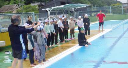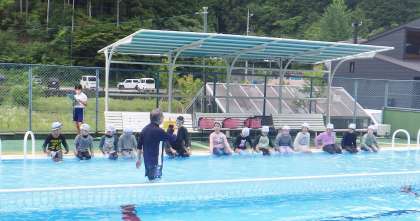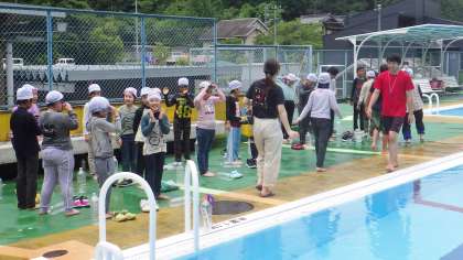 外部からインストラクターをお招きして、着衣水泳を行いました。経験しておくだけでいざという時に役に立つ、この着衣水泳。水難事故に遭わないための注意喚起につながる講習にもなりました。