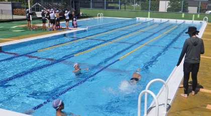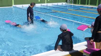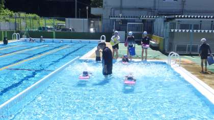 1時間目に3、4年生が体育の授業をプールで行っていました。絶好のプール日和でした。3、4年生のプールの授業は、先生の指導をよく聞き素直に行動するので、とてもきれいなフォームで泳いでいます。今日1日だけでもかなり上手くなったと思います。ちょっと前まで水に顔をつけるのが怖かったという女の子もビート板なしのキックだけで8m程きれいに泳いできました。