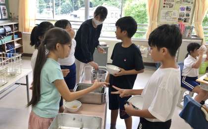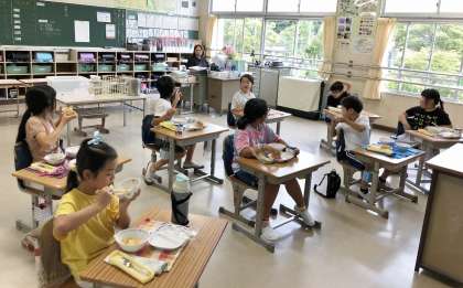 今日は雨で元気な中金っ子たちは、外で遊ぶことができず力を持て余し気味です。そんな中でも落ち着いた生活ができています。今日は、久しぶりに給食の時間の様子を観て回りました。「給食は美味しいですか」の問いには元気に「美味しいです」と答えてくれました。黙食はもうしていませんが、味わって食べている中金っ子が多かったです。