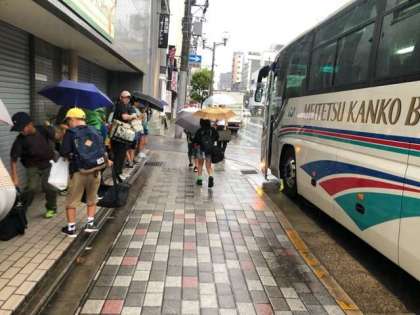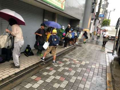 なごみ宿『都和』に到着しました。京都に入って、雨が降り出しました。宿までの300m程傘をさしての移動でしたが、みんなスムーズに移動ができました。この後、17時40分から夕食、そして、京都タワーへ出掛けて、お風呂に入って、就寝です。後、3回配信を予定してます。