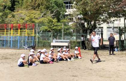 中京大学の先生でもあり、東京オリンピック陸上競技の日本代表コーチでもあり、自らオリンピック夏と冬の両方で日本代表として出場経験のある青戸慎司先生を、高橋スポーツクラブの仲介で講師に迎え3、4年生が「走り方教室」を行いました。オリンピック選手と会うのが初めてだという3年生は少し緊張した感じもありましたが、日本代表の選手も同じ練習を実際に指導している青戸先生から教わり、走り方のポイントがわかってきた児童の走りは、素晴らしくかっこよくなりました。