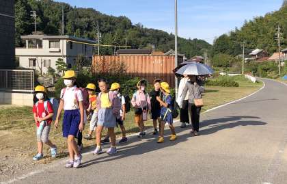 2日、18時28分に教育委員会からFAXが届きました。内容は豊田市中金付近(旧西中金駅舎裏)で16時30分頃に道を横切る熊1頭が目撃されたという内容でした。地域に情報を発信するとともに、本日の登校指導について音楽で使う鈴を職員に持たせ、登校指導に付き添うことにしました。何事もなく皆、登校出来てホッとしています。いつも付き添っていただける地域ボランティアの方たちにも情報共有し、安全に登校できました。