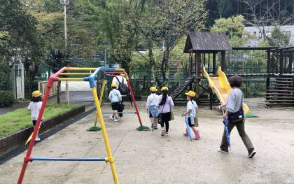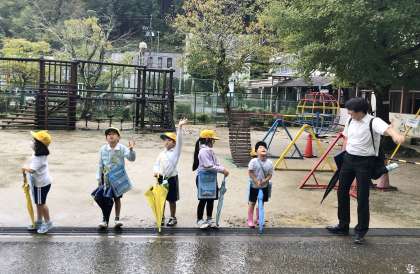 1年生が交通安全教室に出かけていきました。出発するころには雨も上がっていました。中金小学校恒例の「行ってきます」「行ってらっしゃい」のあいさつを済ませ、たくましく成長した1年生が元気に出かけていきました。午後からは、4年生が交通安全教室に出かけていきます。