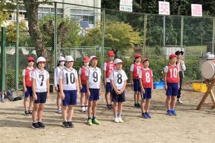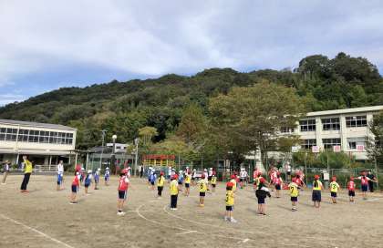 令和5年度中金小学校運動会スローガンは「仲良しパワーは無限大 なかまを信じて 心をひとつに」です。運動会当日は、赤白に分かれて競技します。そこには、勝利を目指し最後まであきらめない真剣な中金っ子の姿があることでしょう。「無限大」の言葉から「あきらめない心」を感じます。真剣に勝負した後には、お互いを認め合い、今以上のかたい絆て結ばれ、中金っ子がひとつになることでしょう。今日は、全校競技の玉入れを練習しました。