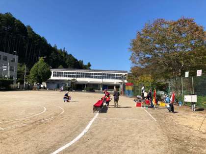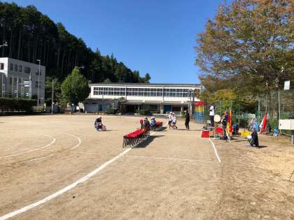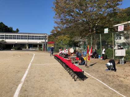 高学年種目の『探せ中金人!借り人競争』です。運動場に居る人全てがターゲットです。座る椅子は、表現保護者優先席に使うために用意されたものです。