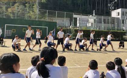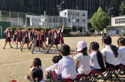 今日の1校時に表現運動鑑賞会を行いました。ます、感心したのは自発的に石拾いが始まったことです。早く運動場に出てきた児童から、石拾いが始まりました。とてもいい光景でした。石拾いの後、ラジオ体操をして運動会の当日に披露する表現運動を全校で見せ合いました。鑑賞して良かったことを発表し合う場面も、とても温かい雰囲気が感じられ当日の演技にエネルギーが充電された有意義な時間となりました。かわいかったり、かっこよかったりで魅せられます。当日の保護者の方たちの反応が楽しみです。