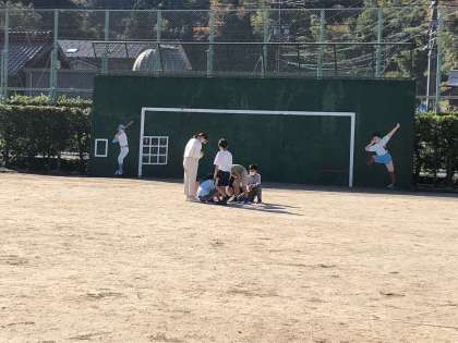 1校時の前に、4年生が楽しそうに運動場へ向かっていました。何をするのかと、見に行くと理科の『川の流れ』で学習する為に必要な土を集めていました。