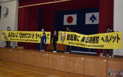 折り鶴大作戦は、今年で36回目です。交通安全を願ってずっと続いてきた行事です。みんなが交通安全の願いを込めて折った鶴は、メッセージカードと一緒に地域の人たちが集まる場所へ置き、そこを訪れた方々に持っていってもらいます。今年もカレンダーを作りました。ポスターや標語を募集し、選ばれた作品を載せています。そのカレンダーは中金小学校の学区の地域の全部の家に配られます。また、フェンスに掲示する横断幕やフラワーロードに掲示するポスターを今年も作っていただきました。これらの活動は、地域の方々の交通安全への啓発だけでなく、この活動に取り組む皆さんの心の中に「交通安全」がしっかり刻まれるために行っています。これからも皆さん自身交通安全に気を付けて、元気に楽しく暮らしていけるよう願っています。