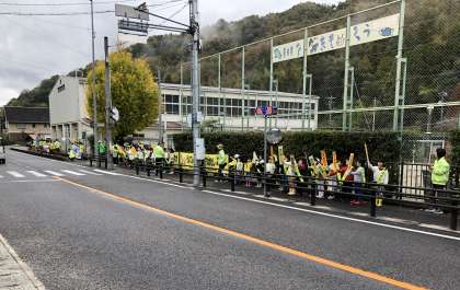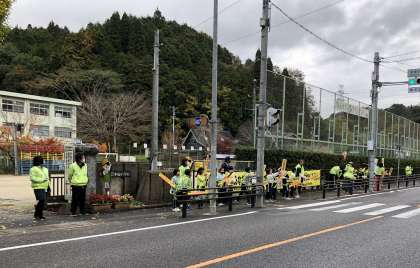 折り鶴大作戦は、今年で36回目です。交通安全を願ってずっと続いてきた行事です。みんなが交通安全の願いを込めて折った鶴は、メッセージカードと一緒に地域の人たちが集まる場所へ置き、そこを訪れた方々に持っていってもらいます。今年もカレンダーを作りました。ポスターや標語を募集し、選ばれた作品を載せています。そのカレンダーは中金小学校の学区の地域の全部の家に配られます。また、フェンスに掲示する横断幕やフラワーロードに掲示するポスターを今年も作っていただきました。これらの活動は、地域の方々の交通安全への啓発だけでなく、この活動に取り組む皆さんの心の中に「交通安全」がしっかり刻まれるために行っています。これからも皆さん自身交通安全に気を付けて、元気に楽しく暮らしていけるよう願っています。
