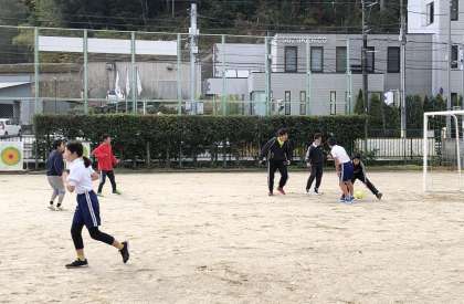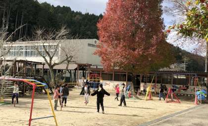 みんな仲良く、運動場でそれぞれ思い思いの運動をして楽しんでいます。笑顔いっぱいの時間です。