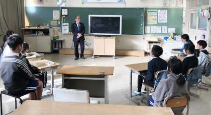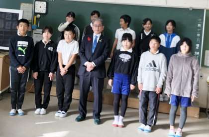 石野地区から市議会議員として活躍されているすずもと昌秋市議にお越しいただいて、6年生の国語の授業を観ていただきました。すずもと様からは、「自分たちの町をよくするための提案が、パワーポイントを使って分かりやすくまとめられている」と、褒めていただきました。6年生のみなさんも、自分たちの提案発表をすずもと昌秋市議に聞いてもらえて、大満足の授業でした。