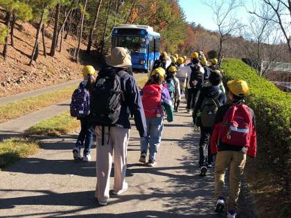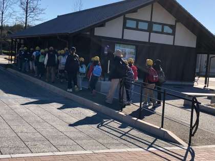 いよいよスタートです。説明をパークの方から聞き、最初の目的地のどんどこ森に向かってます。