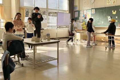 1・2年生が自分たちで考えたゲームでお互いに楽しんでもらおうとゲーム大会をおこなっていました。輪投げや空気鉄砲、ボーリングや的当て、釣り堀もありました。みんな手作りです。ルールを守って楽しんでる姿に感心しました。