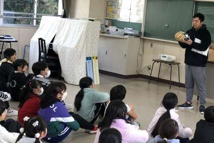 今朝、急きょ放送集会を変更して音楽室で全校集会を行いました。いつものように元気な挨拶で始まりました。今日の集会の目的は、あのメジャーリーガー大谷翔平選手から、中金小学校にグローブが届いたことを報告することでした。集会の中で大谷選手のメッセージを先生から聞いて、グローブと対面しました。皆さんから歓声と拍手が沸き上がりました。今後、各教室を回した後、中金っ子には自由に使ってもらおうと思います。全校集会の最後は、今週の目当てが発表され集会を終えました。