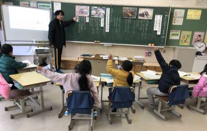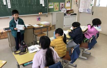 2時間目に1年生が授業を公開しました。今、先生たちは「授業力アップ週間」という取組をしています。授業を観合ってそれぞれ良いところを吸収しようとしています。今日の1年生の公開された授業は、国語でした。敵から子どもを守る親鳥の工夫について説明されている文章でした。なぜ子供を守る行動を親鳥はするのかの問いに、「子孫を残すため」と素晴らしい意見が出たことに感動しました。1年生は立派に成長しています。