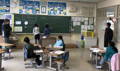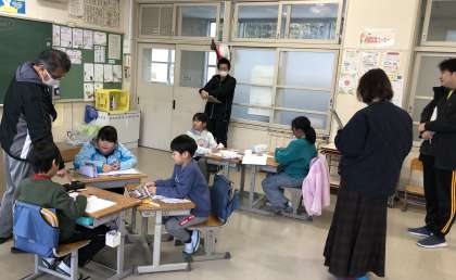 3時間目に3年生が授業を公開しました。3年生の公開された授業は、算数でした。分数について学んでいました。分数のたし算についてグループで話し合って答えを導き出す様子を観させていただきました。8等分したショートケーキが8個あったらケーキはいくつになりますか。はじめは、8個と答えていましたが、話し合っていく中でケーキは1個になると自分たちで答えを導き出すことができました。3年生も立派に成長しています。