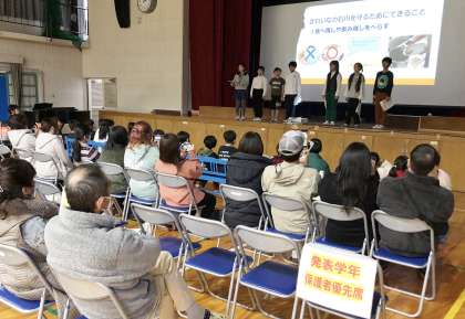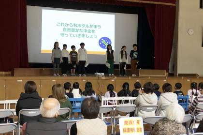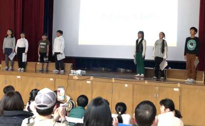 5時間目に3・4年生の学習発表会を行いました。平日にもかかわらず、たくさんの保護者の方や地域の方たちが来ていただき、素晴らしい学習発表会となりました。中金の植物や生き物について調べたことの発表と合唱劇「一つの花」を披露しました。中金の自然の素晴らしさを守っていこうとする気持ちがよく伝わる発表と、歌声がとても素晴らしかった合唱劇でした。素晴らしく成長した3・4年生の姿を見ることができました。