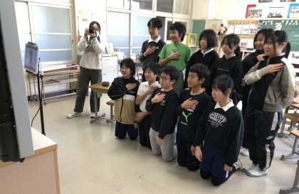 今日の5時間目にインドネシアとリーモートでつなぎ、国際交流の授業を行いました。本校の保護者の方が、会社の指示でインドネシアで仕事をされています。その方からインドネシアについてと現地の言葉を教えていただきました。学ぶ場面では、日本との違いがよくわかるようにスライドを交え説明していただきました。現地の言葉は、4通りの挨拶の仕方とありがとうという意味の言葉を教えていただきました。飛行機で8時間以上かかる遠い国が、とても近く感じた授業でした。