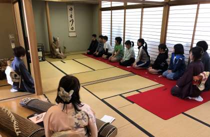 昨年から、卒業記念でマナー講座を行っています。石野交流館の茶室をお借りして和食の食べ方や茶のいただき方を教わりました。茶室では、少しみんな緊張気味でしたがとてもいい体験ができました。抹茶も美味しかった。と話す児童が多かったことに少し驚きました。教えて頂いた、地域講師の方々に心より感謝申し上げます。今年は、お琴の生演奏も聞くことができました。素晴らしい卒業記念となりました。