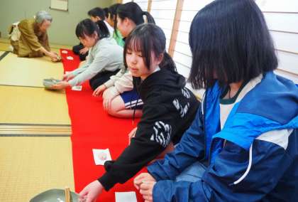 昨年から、卒業記念でマナー講座を行っています。石野交流館の茶室をお借りして和食の食べ方や茶のいただき方を教わりました。茶室では、少しみんな緊張気味でしたがとてもいい体験ができました。抹茶も美味しかった。と話す児童が多かったことに少し驚きました。教えて頂いた、地域講師の方々に心より感謝申し上げます。今年は、お琴の生演奏も聞くことができました。素晴らしい卒業記念となりました。