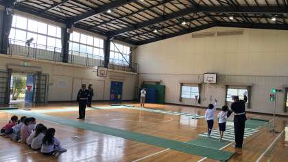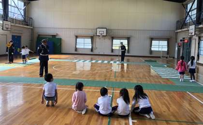 今日の1時間目に豊田市交通指導員の方4名をお招きして、交通安全教室を1年生が行いました。交通安全のルールや知識を確認して、実際の場面を想定した状況で実際行動してみました。左右の確認や素早く横断するなど、それぞれの担当の指導員からしっかりと指導していただけました。毎年本校は、交通安全の優良校に選んでいただいています。一昨年は、愛知県知事から表彰していただきました。今年も中金小学校区は、交通事故0を継続します。