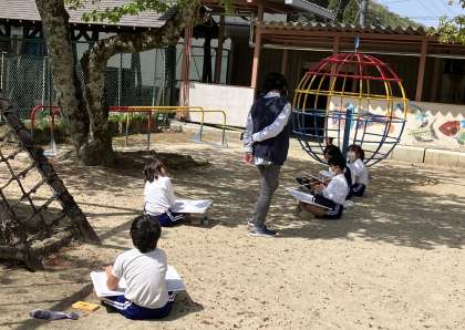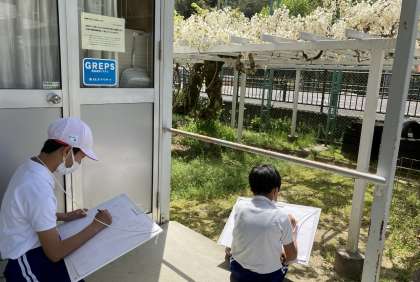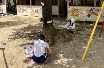 今日は、とても陽気がよく外の活動が気持ちがいい日です。高学年が校庭で写生をしていました。どの子も楽しそうに絵をかいていました。今日の作品が完成し掲示されるのを楽しみにしたいと思います。