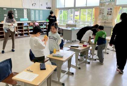 授業参観が始まりました。どの子も少し緊張気味です。先生方は、家の方たちに子どもたちの輝いた姿を見ていただこうと、工夫を凝らした授業が行われました。