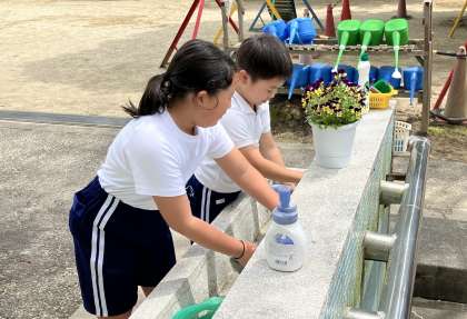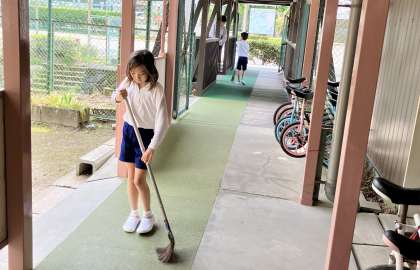 今日の掃除の時間の様子です。南山班に分かれて掃除をしています。今日は、教室以外の場所を掃除している様子を紹介します。どこの場所も、高学年がしっかり指示を出してみんな仲良く掃除をしています。先生たちも、あっちに行ったりこっちに居たりと忙しい時間です。でも、本校は、しっかりしたお兄さんお姉さんのおかげで、たとえ先生たちが居なくてもどこの場所も毎日しっかり掃除ができています。