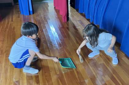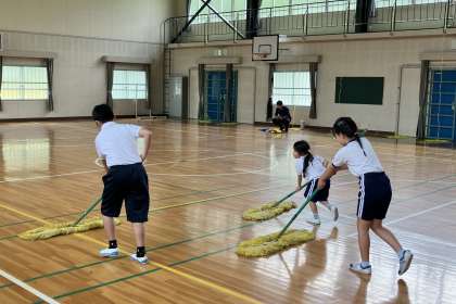 今日の掃除の時間の様子です。南山班に分かれて掃除をしています。今日は、教室以外の場所を掃除している様子を紹介します。どこの場所も、高学年がしっかり指示を出してみんな仲良く掃除をしています。先生たちも、あっちに行ったりこっちに居たりと忙しい時間です。でも、本校は、しっかりしたお兄さんお姉さんのおかげで、たとえ先生たちが居なくてもどこの場所も毎日しっかり掃除ができています。