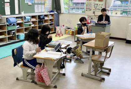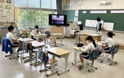 今日の1時間目の授業風景です。どこのクラスも素晴らしい授業をしています。今年は特に、始まりと終わりの元気なあいさつが各教室からよく聞こえてきます。今日も始まりのあいさつに誘われるように授業を観に行くと、連休明けとは思えない落ち着いた授業が行なわれていました。その後、校長室に戻りお客さんと話をしていると、「この学校は、静かですね。」と言っていただきました。また、鶯の鳴き声や川の音が聞こえてきてそれもまたいいですねと褒めていただきました。