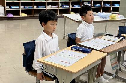 今日の1時間目の授業風景です。どこのクラスも素晴らしい授業をしています。今年は特に、始まりと終わりの元気なあいさつが各教室からよく聞こえてきます。今日も始まりのあいさつに誘われるように授業を観に行くと、連休明けとは思えない落ち着いた授業が行なわれていました。その後、校長室に戻りお客さんと話をしていると、「この学校は、静かですね。」と言っていただきました。また、鶯の鳴き声や川の音が聞こえてきてそれもまたいいですねと褒めていただきました。