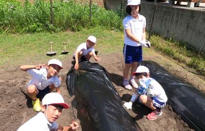 「ガーデンすくすく」(畑)で苗植え(1・2・3年生)2
