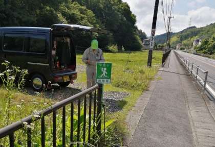 今月10日から始まるPTAによる夏の付き添い下校。児童の給水場所として活用したり、付き添いで車を使う方の駐車場としても使うことができる場所です。地域の方からの理解・協力も得られ、看板の設置に至りました。場所を提供していただいた地域の方には、感謝です。
