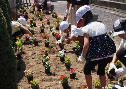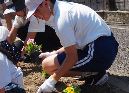 今年も鈴鍵さんの協力のもと153号線沿いの植栽活動を終えることができました。日影交差点方向の歩道が可愛い花で彩られました。中金っ子が植えた花が、運転手さんに見えたり、歩行者が目にしたりすると心が和んで交通事故も減ることでしょう。