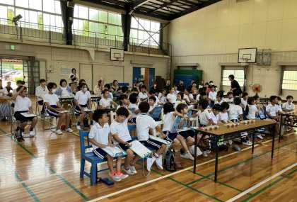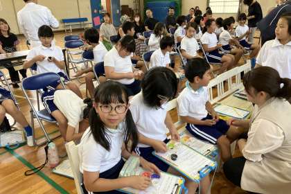 3、4時間目は、学校保健委員会を体育館で行いました。小牧の厳選素材を使った身体と心に優し料理を提供している人気店Chez Chouchou(シェ シュシュ)のシェフをお招きして食育の講義をしていただきました。保護者の方も参加して、シェフが作った料理の試食もさせていただきました。食生活について考える素晴らしい講義でした。
