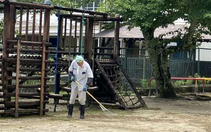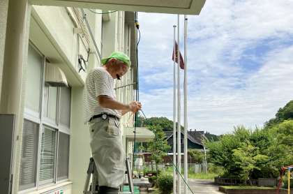ミストを昨年同様に体育館前と職員室前に設置しました。ミストを稼働させると、風が起こります。その風はひんやりとし、とても涼しいです。打ち水効果だと考えられます。昨年度は、なかなか外で遊ぶことができずにあまり稼働させませんでしたが、安全確保のためにも校内整備員さんにお願いして付けて頂きました。心配なのは中金っ子だけでなく、暑い中、本校の2人の公務手さんはいつも環境整備に汗を流して頂いています。皆さんにとって、安全な学校でありたいと思います。